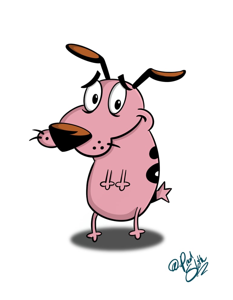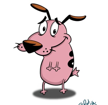 Courage has always hit different for me. He’s literally terrified of everything, but he still shows up every single time. I tried to lean into that wide-eyed, slightly nervous look — like he’s already regretting whatever’s about to happen. The softer, moody background felt right for him too. This one felt a little quieter while I was drawing it. Not loud chaos like Cosmo — more like that anxious kind of bravery where you’re shaking but still standing there anyway.