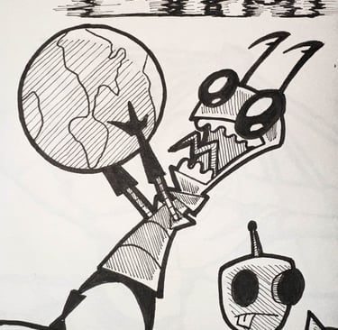 Holding the world in his hands, Zim combines ominous ambition with absurd humor, a perfect mix of dramatic flair and chaotic charm. This piece captures the intensity and exaggerated stakes of his otherworldly misadventures.